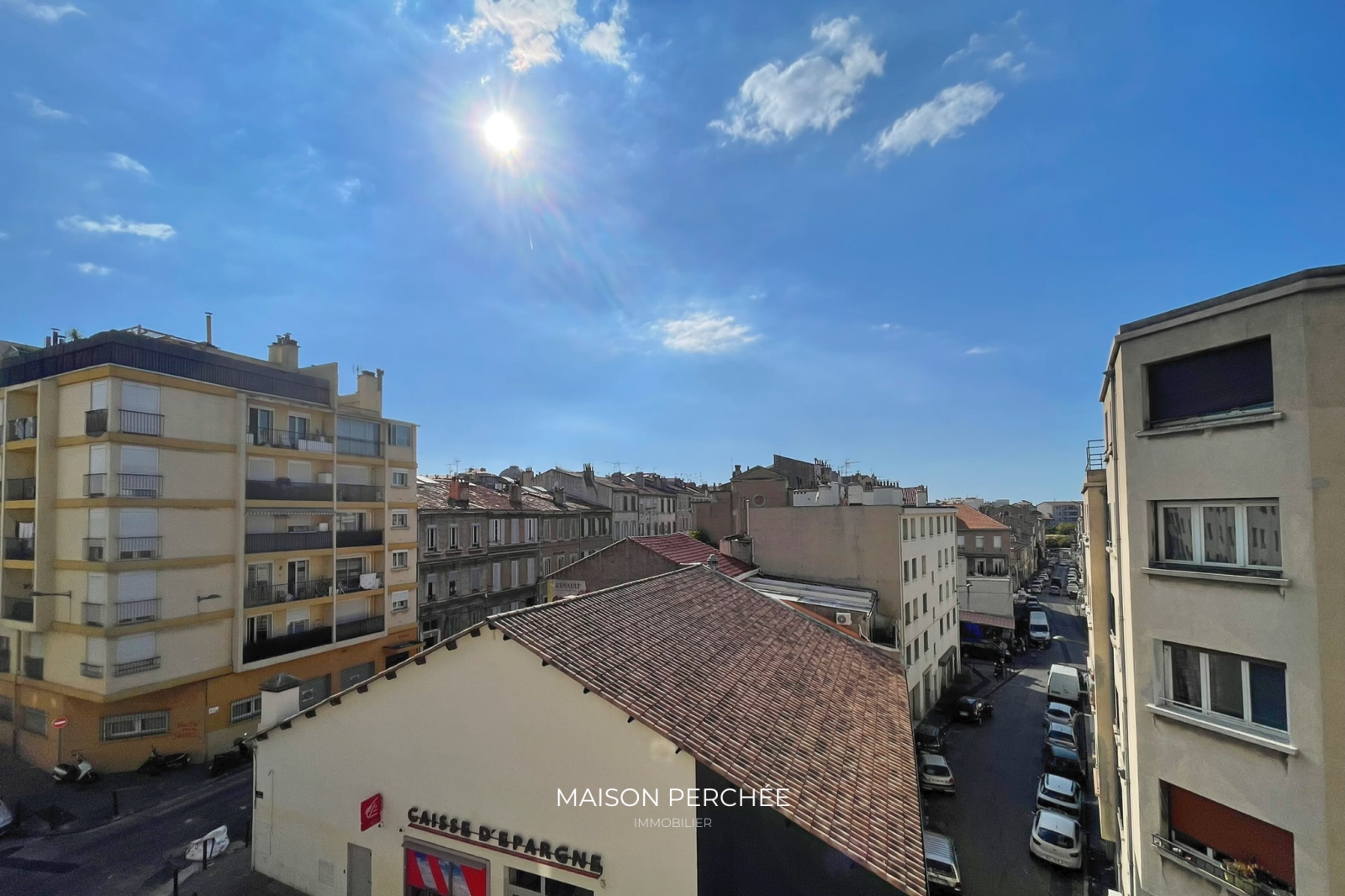Marseille (13003)Au troisième étage d'une copropriété bien tenue avec parking, ce trois pièces traversant de 63m² se compose d’un séjour climatisé de 22m² bénéficiant d'une vue dégagée, d’une cuisine aménagée au sein d'une loggia et d'un coin nuit. Celui-ci dispose de deux chambres, d'une salle de bain et d'un WC indépendant. Le bien offre de beaux volumes à rafraîchir et une luminosité naturelle tout au long de la journée grâce à une exposition est-ouest. Une cave en sous-sol complète l'ensemble. Situé à proximité de la Gare Saint-Charles, du centre culturel Friche la Belle de Mai, des commerces et transports.