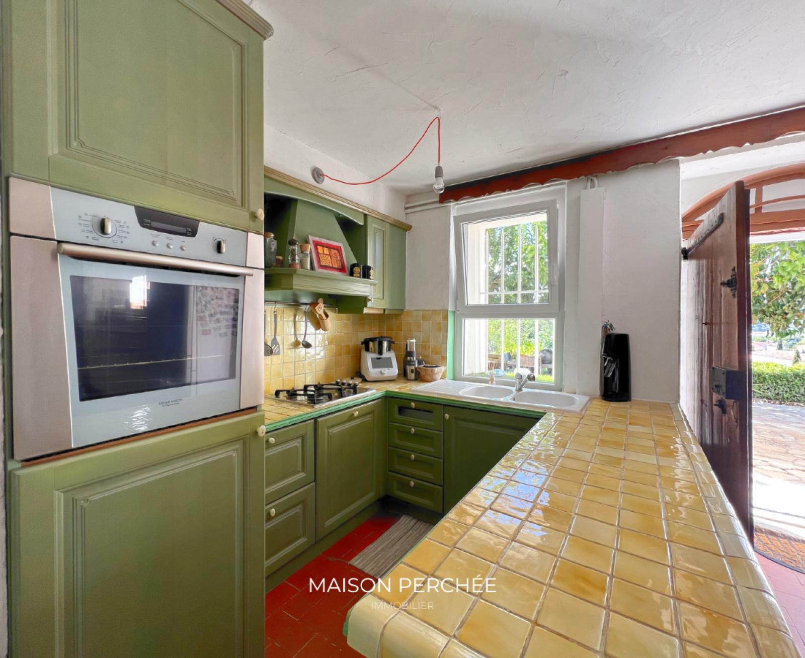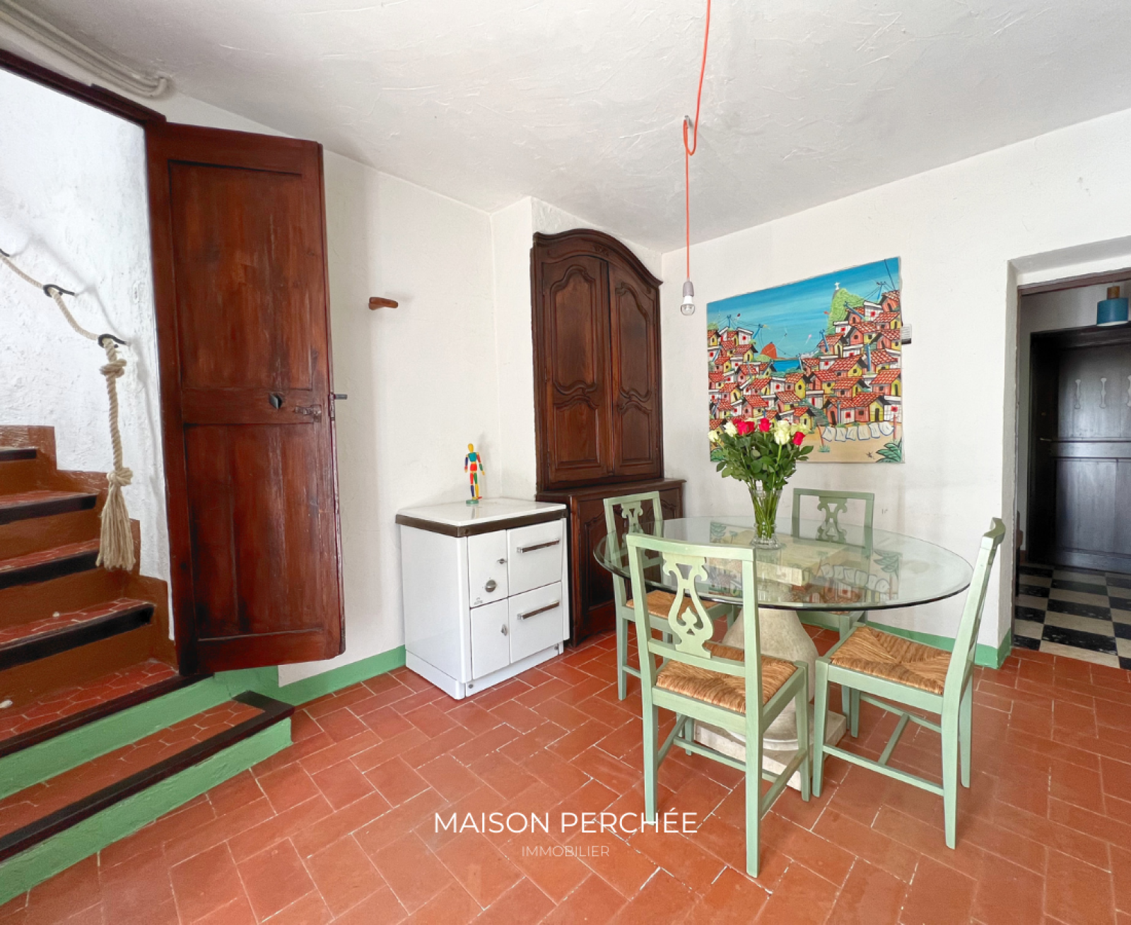 Un charmant escalier en pierre agrémenté d’un lavoir ancien mène à l’entrée de la propriété. Le rez-de-chaussée comprend une grande cuisine de type provençale ouverte sur un espace dînatoire, un séjour, une cave à vin, une buanderie avec douche et un WC séparé. Une annexe de 26m² attenante au salon offre le potentiel d’un bel agrandissement de la pièce de vie.