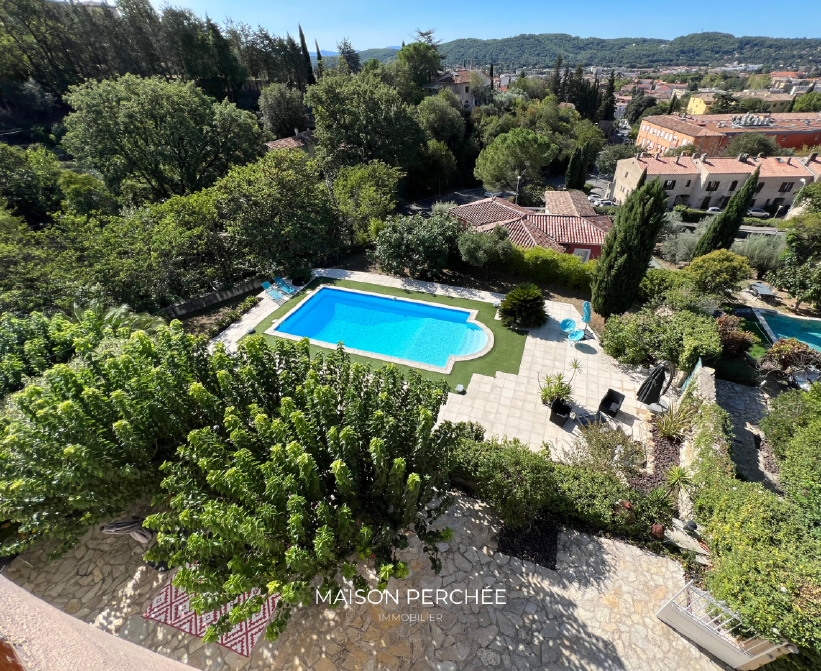 La propriété est située sur les hauteurs de la ville, dans un environnement calme, à quelques minutes du centre-ville offrant ainsi une proximité immédiate des écoles et des commerces.