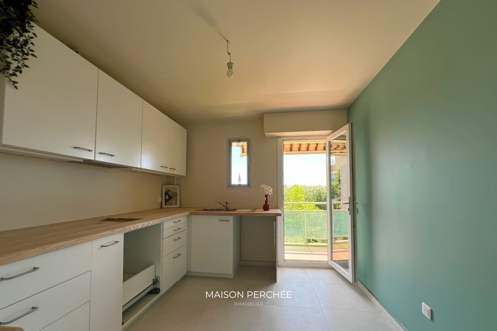 Dès l’entrée, un grand placard intégré permet un rangement pratique. La cuisine aménagée est neuve, elle s’ouvre sur un balcon de 12m² exposé sud, idéal pour profiter d'une vue dégagée sur la ville. Le salon bénéficie d'un sol en marbre et d'une belle luminosité grâce à ses larges ouvertures, prolonge aussi cet espace extérieur, créant ainsi un espace de vie convivial.