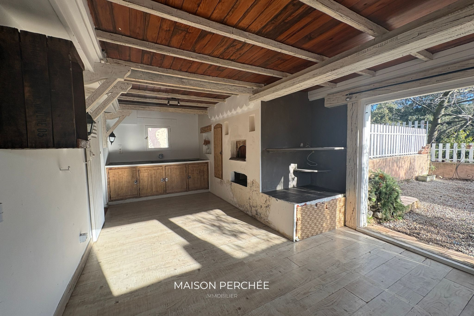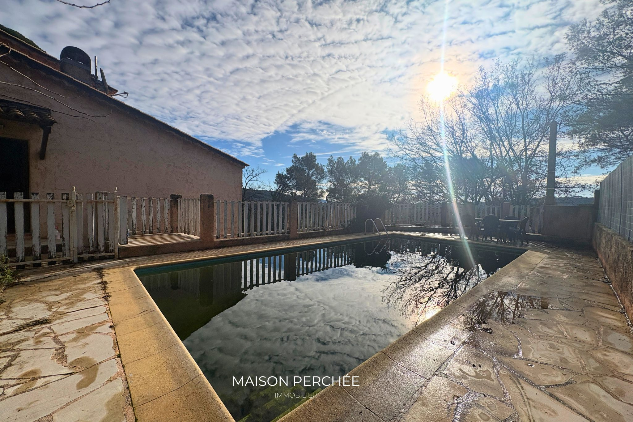 Figanières (83830)Perchée sur les hauteurs de Figanières sur un terrain de 1420m², cette villa avec terrain dispose d’un lieu de vie de 165m² habitables (169m² au sol) à quelques minutes du centre-ville. Elle dispose d’un rez-de-jardin aménagé en atelier, pouvant convenir à différents usages selon vos besoins. L’accès au rez-de-chaussée se fait par une entrée qui dessert une salle d’eau ainsi qu’un WC indépendant. Ce niveau comprend également une chambre un cuisine indépendante et un salon/salle à manger de 38 m², prolongé par une véranda et donnant accès à une terrasse avec une vue sur la nature environnante. À l’étage, un palier dessert deux chambres ainsi qu’une salle de bain. La propriété comprend également un appartement indépendant attenant à la maison. Celui-ci se compose d’une cuisine, d’un séjour ouvrant sur un petit jardinet situé à l’avant, d’une chambre, d’un dressing et d’une salle d’eau avec toilette. L’ensemble est complété par des dépendances extérieures comprenant un abri de jardin, une piscine avec son local technique ainsi qu’un garage. La surface totale développée est de 169 m². Les menuiseries sont en bois, simple vitrage. Cette propriété représente une opportunité intéressante pour un projet familial.