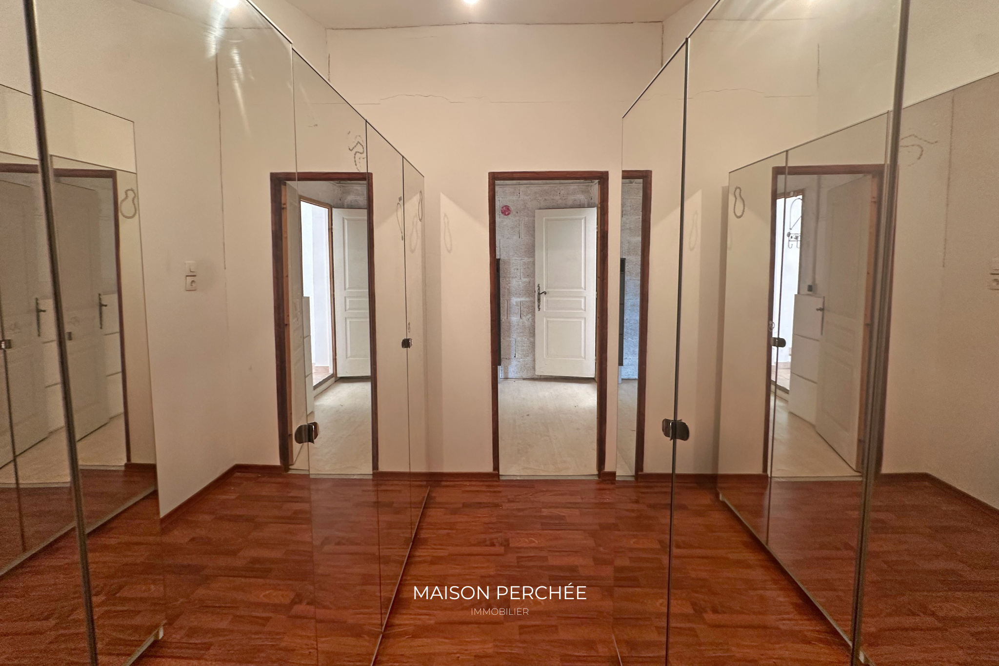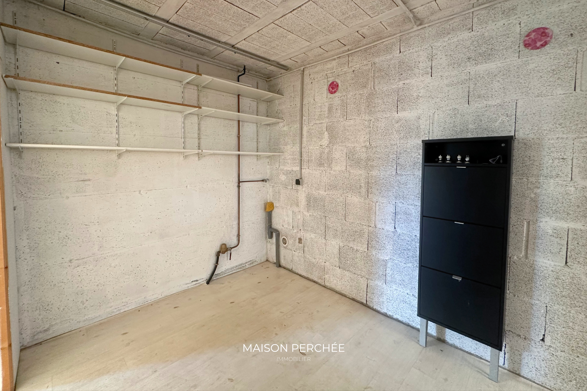 Le rez-de-chaussée offre la possibilité de créer un espace de vie indépendant. Ce niveau accueille une chambre, un dressing et une pièce à aménager en cuisine et salle d’eau.