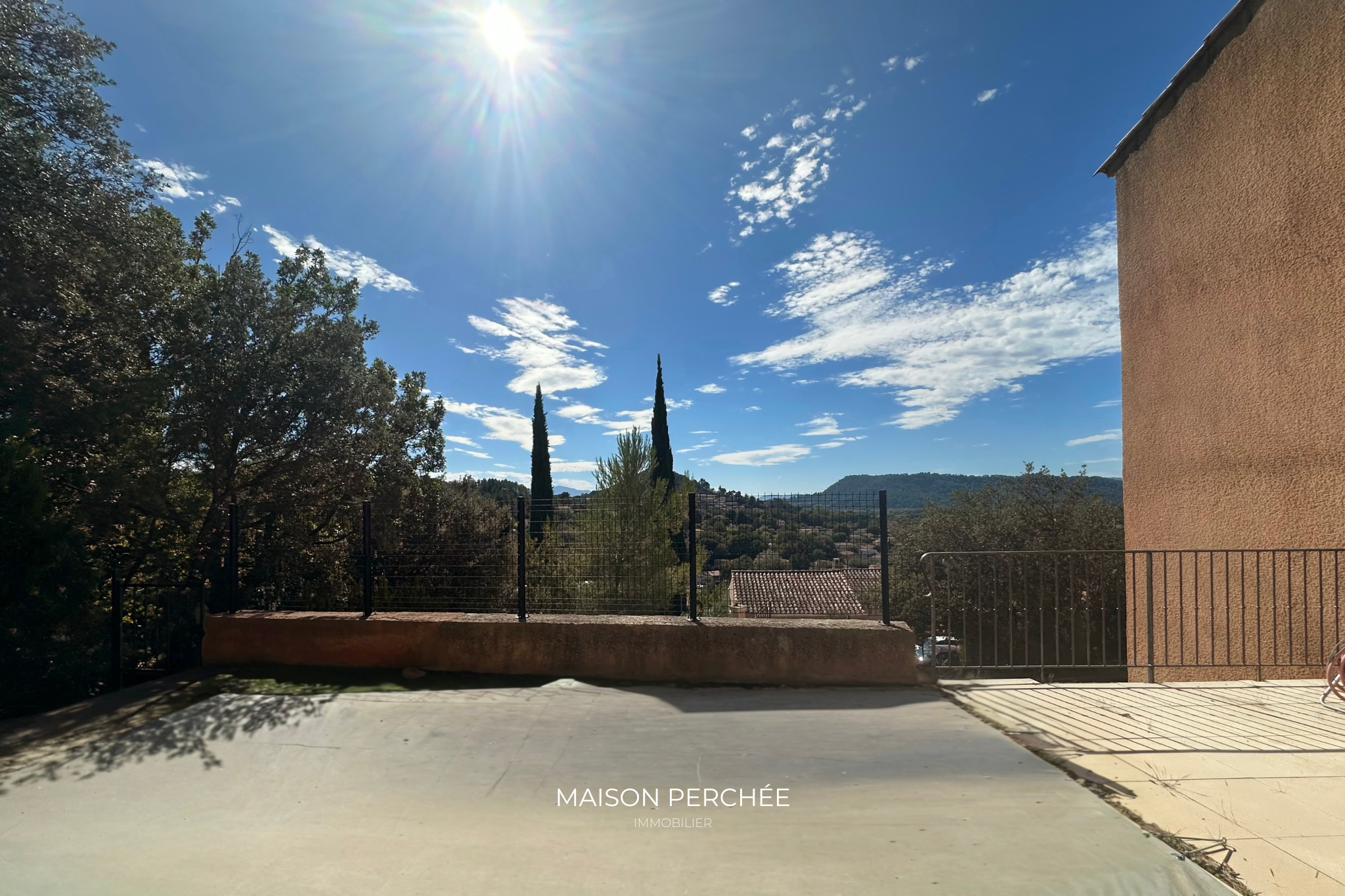 Vidauban (83550)Perchée sur les hauteurs de Vidauban, celle villa dispose d’une vue sur la Chapelle Sainte Brigitte et déploie une surface de 104m² sur un terrain de 760m² avec piscine.