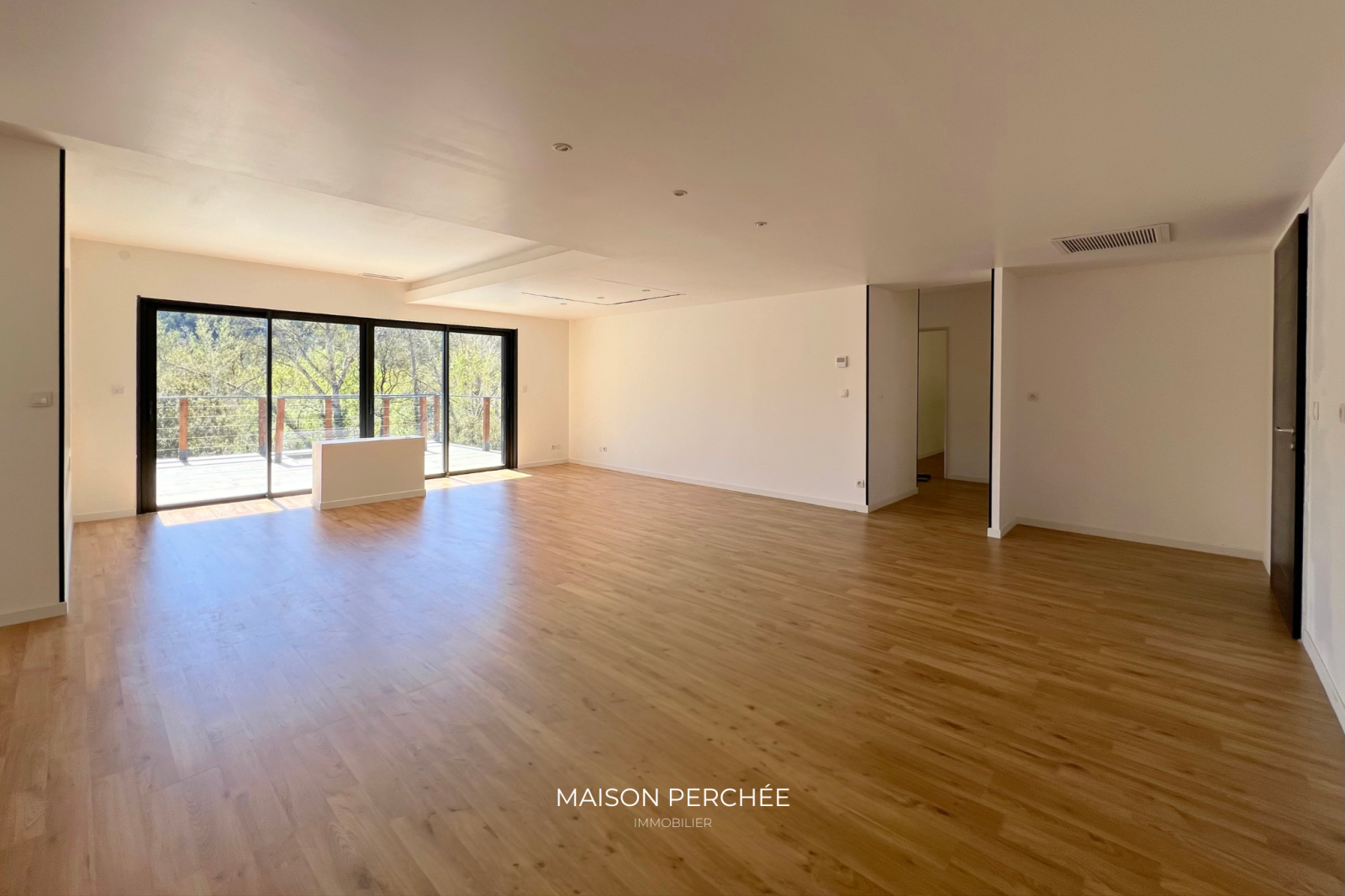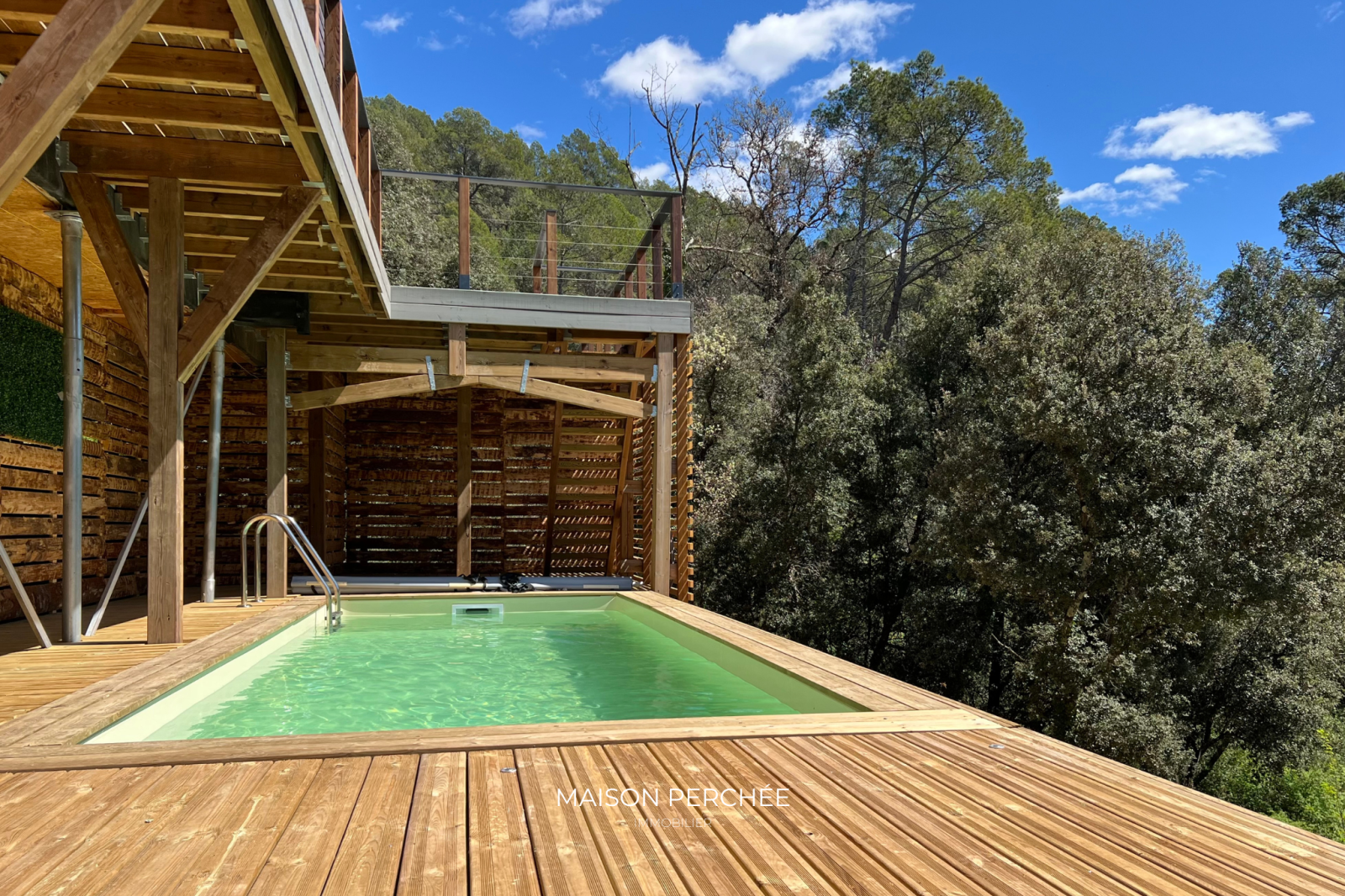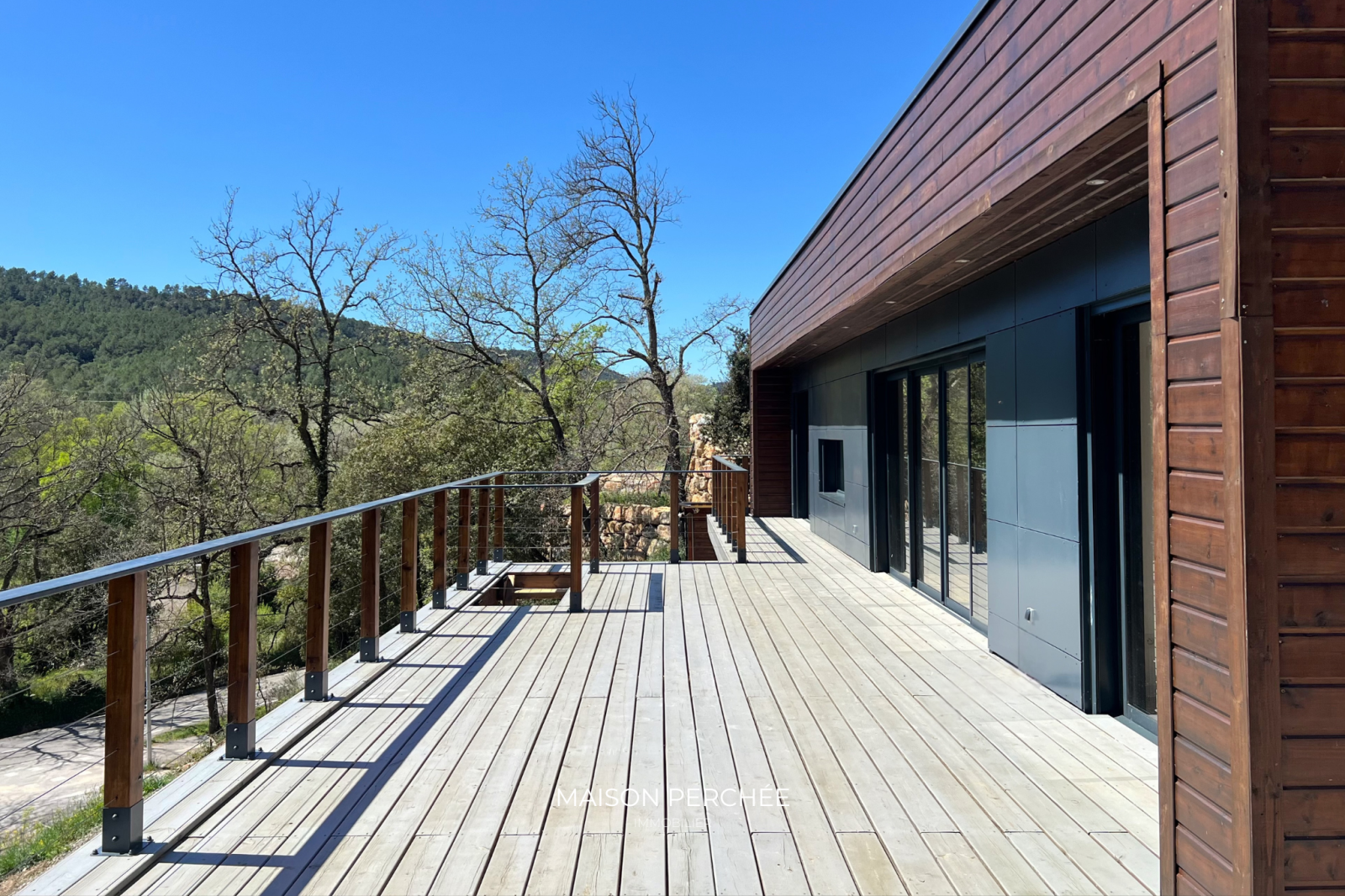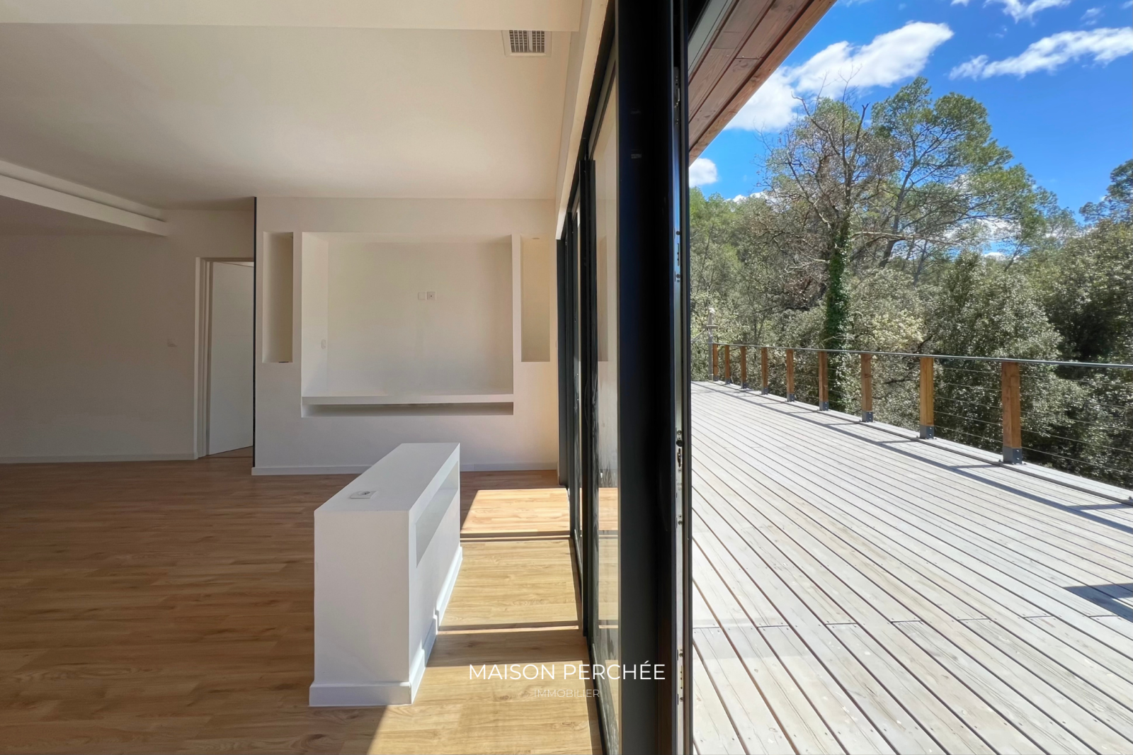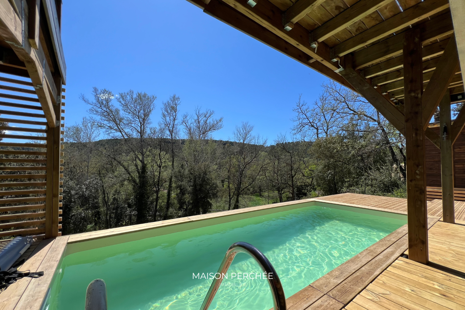 Salernes (83690)Rare à la vente! Située au cœur de la Provence Verte et au sein du village provençal de Salernes, cette villa atypique neuve de 106m² à ossature bois séduit par son architecture moderne, ses volumes généreux et sa vue sur la forêt environnante. Édifié sur un terrain de 1376m² en position dominante, le bien dispose d’une belle pièce de vie lumineuse de 46m² ouverte sur une vaste terrasse suspendue. L'installation du réseau d'eau et d'électricité est en place et est prête à accueillir la cuisine de votre choix. Une niche intégrée au décor du salon confère un atout esthétique à votre coin TV. L'espace nuit offre trois chambres dont deux avec un accès direct à l'extérieur. La suite parentale, à l'écart des deux autres chambres, a été pensée pour une vie de famille plus confortable ou pour recevoir en toute sérénité. Une deuxième salle de bain dispose d'une douche italienne et d'une baignoire qui offre une vue sur la forêt grâce à une fenêtre panoramique. Une buanderie et un WC indépendant avec lave-main complètent la description. Une passerelle et des escaliers en bois permettent de circuler aisément autour de la villa et mènent vers une piscine exposée sud prolongée par une terrasse ombragée et à ciel ouvert. À l'extérieur, un cabanon permet de disposer d'un espace de stockage abrité. Le bois, matériau noble et chaleureux, offre une ambiance douce et contemporaine, tout en assurant une excellente performance énergétique. Pompe à chaleur gainable réversible, fenêtres double vitrage à isolation renforcée et volets roulants électriques. Un espace a été prévu pour le stationnement des véhicules au sein de la propriété. Ce cocon est un véritable coup de cœur, à la fois intime et ouvert sur un cadre naturel. Le village de Salernes est réputé pour ses fabriques de céramiques, non loin du Parc Régional du Verdon, sur la route des vins de Provence, des lavandes et des oliviers.