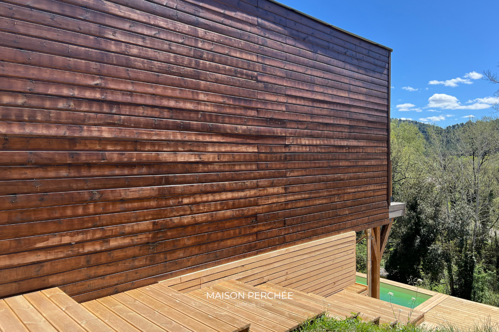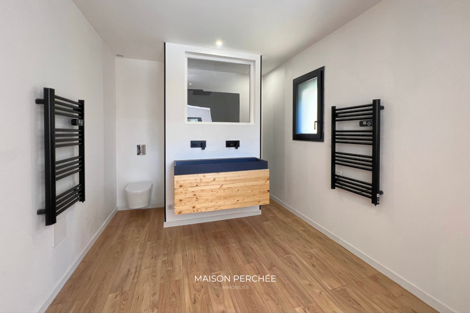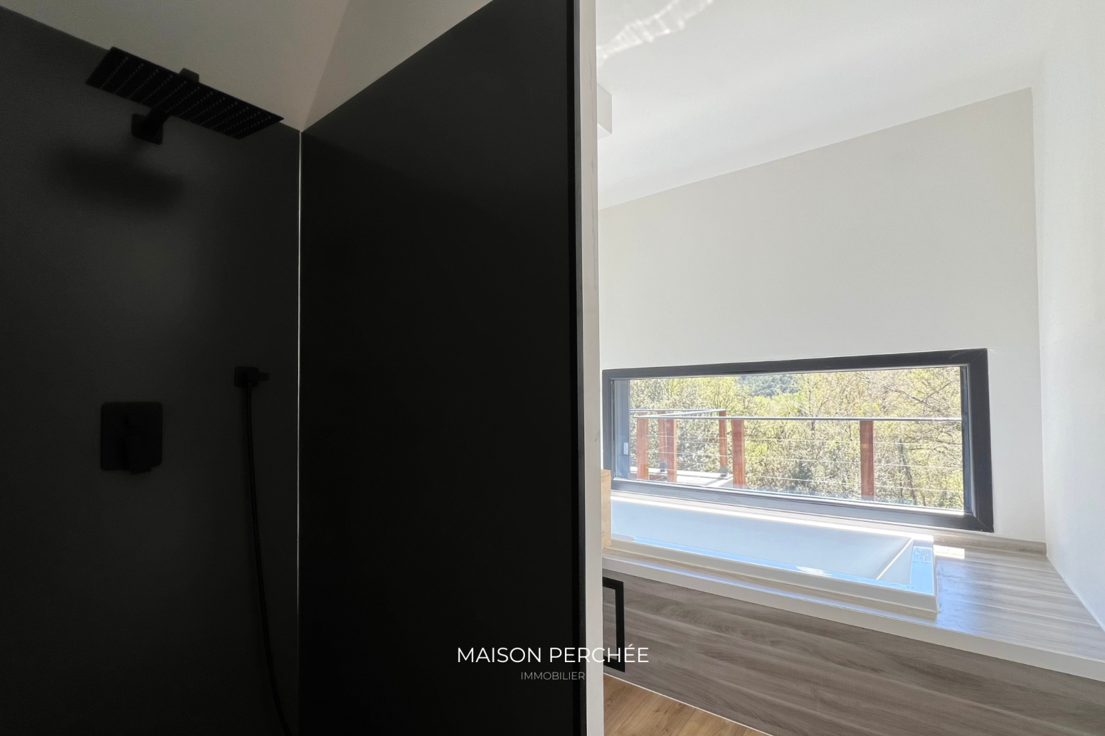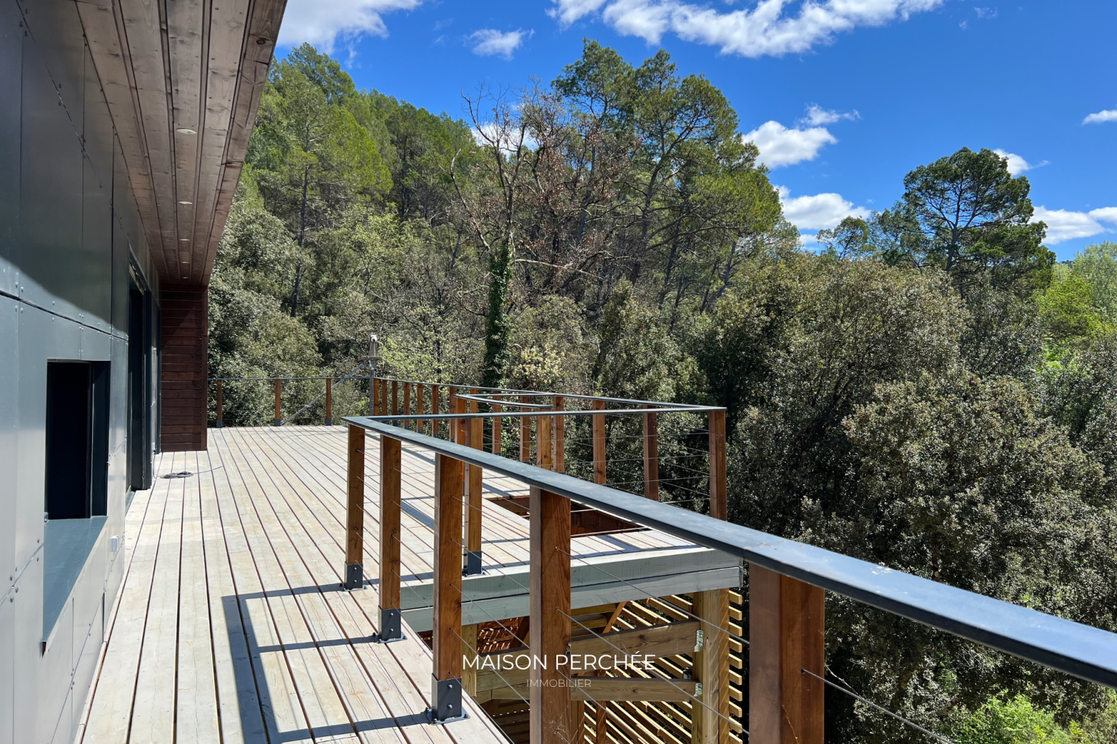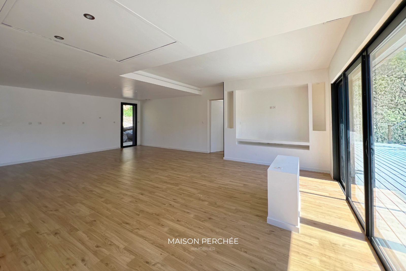Salernes (83690)Rare à la vente! Située au cœur de la Provence Verte et au sein du village provençal de Salernes, cette villa atypique neuve de 106m² à ossature bois séduit par son architecture moderne, ses volumes généreux et sa vue sur la forêt environnante. Édifié sur un terrain de 1376m² en position dominante, le bien dispose d’une belle pièce de vie lumineuse de 46m² ouverte sur une vaste terrasse suspendue. L'installation du réseau d'eau et d'électricité est en place et est prête à accueillir la cuisine de votre choix. Une niche intégrée au décor du salon confère un atout esthétique à votre coin TV. L'espace nuit offre trois chambres dont deux avec un accès direct à l'extérieur. La suite parentale, à l'écart des deux autres chambres, a été pensée pour une vie de famille plus confortable ou pour recevoir en toute sérénité. Une deuxième salle de bain dispose d'une douche italienne et d'une baignoire qui offre une vue sur la forêt grâce à une fenêtre panoramique. Une buanderie et un WC indépendant avec lave-main complètent la description. Une passerelle et des escaliers en bois permettent de circuler aisément autour de la villa et mènent vers une piscine exposée sud prolongée par une terrasse ombragée et à ciel ouvert. À l'extérieur, un cabanon permet de disposer d'un espace de stockage abrité. Le bois, matériau noble et chaleureux, offre une ambiance douce et contemporaine, tout en assurant une excellente performance énergétique. Pompe à chaleur gainable réversible, fenêtres double vitrage à isolation renforcée et volets roulants électriques. Un espace a été prévu pour le stationnement des véhicules au sein de la propriété. Ce cocon est un véritable coup de cœur, à la fois intime et ouvert sur un cadre naturel. Le village de Salernes est réputé pour ses fabriques de céramiques, non loin du Parc Régional du Verdon, sur la route des vins de Provence, des lavandes et des oliviers.